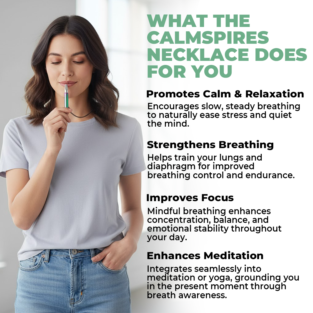 Ease tension, slow your breathing, and restore balance naturally with the Calmspires Serenity Necklace a simple, stylish way to practice mindfulness and improve respiratory strength anywhere, anytime.